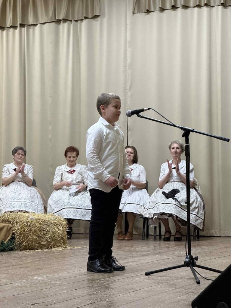 Advent harmadik vasárnapján, az öröm jegyében ünnepeltünk együtt. Az Ajkai Bányász Hagyományőrző Egyesület, Kösöntyű Néptánccsoport és az Ajka – Padragkút Táncegyüttes Szenior csoport tagjai versekkel, mesékkel, énekkel, valamint karácsonyi ünnepkörhöz kapcsolódó hagyományos szokások bemutatásával készültek. Kiss Eszter (ének), Kiss Levente (vers), Józsa Károly és unokája Gál Léna (vers), Bakonyi Zoltánné Gizike (mese) – előadásukkal gazdagították a műsort. Köszönjük a gyermekek szüleinek is a segítséget, a díszletek, jelmezek elkészítésében. A Padragkúti Művelődési ház zsúfolásig megtelt érdeklődőkkel.